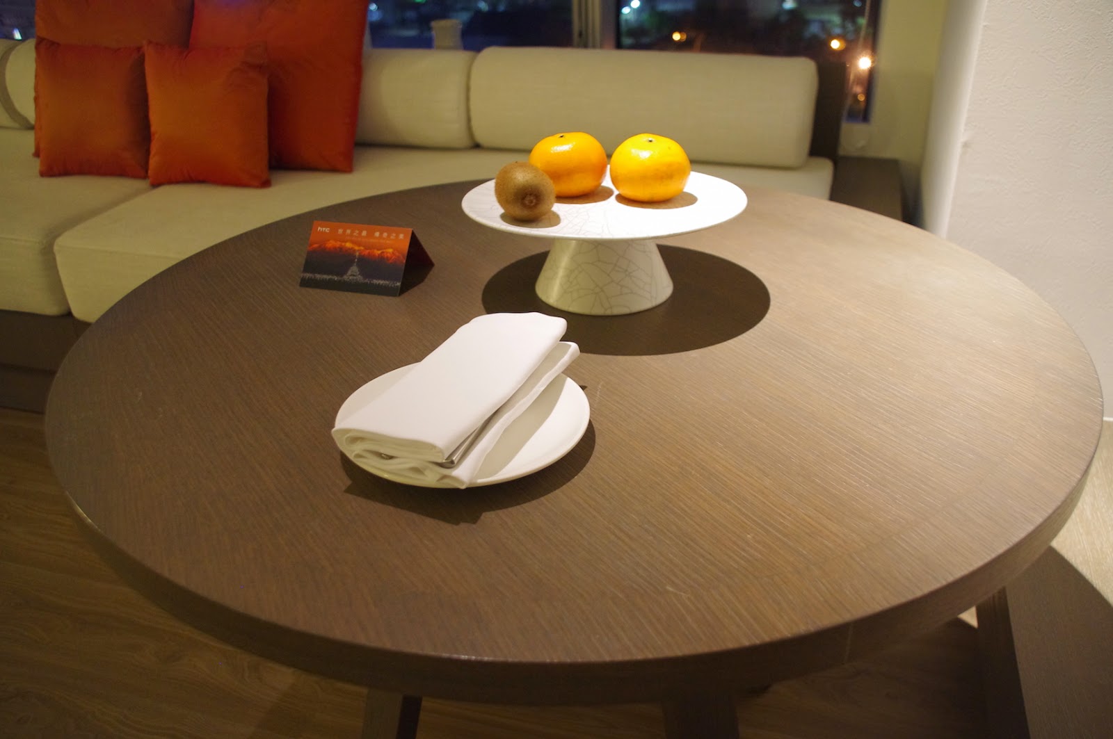 沙發不錯,雖然水果實在跟甜稱不上關係,不過這個桌子搭配的效果還不錯,但下次可以提供更甜一點的水果,好嗎