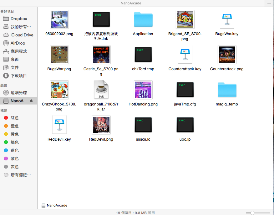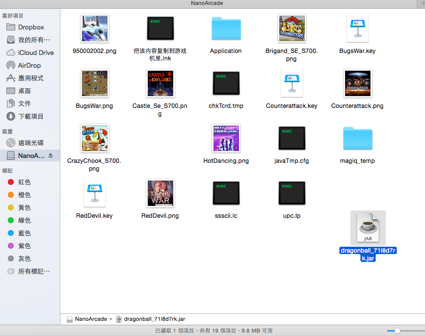 下載完畢後,把檔案移動到奈米街機的資料夾裡,最右下方那個就是七龍珠的,這樣就好了,然後可以將奈米街機從電腦裡移除了