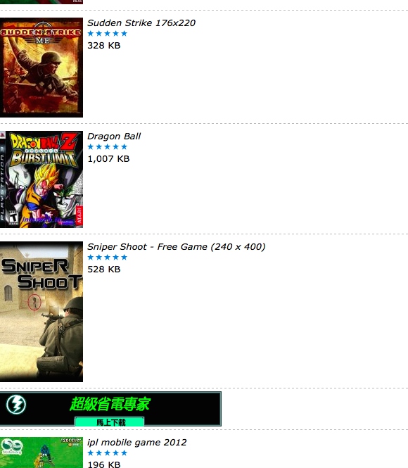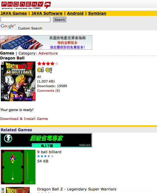 用這個網站(http://phoneky.com/games/)來做示範,我選了七龍珠,最近電影要上映了,來懷舊一下當年看七龍珠的日子,檔案不大,1MB左右,跟現在動輒好幾百GB的遊戲相比,果然是奈米等級,就連現在的手遊都少說幾十MB到幾百MB