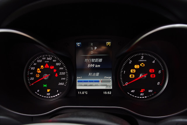 其實原本的方向盤不是這組,這是AMG版本的真皮平底方向盤,握感很好,原本的沒有平底設計,不過沒實際摸到,不知道兩者的質感有沒差別