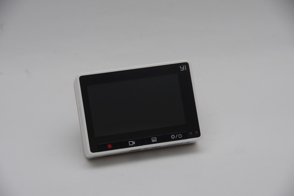 背面居然就沒有香檳金了,哀傷。畢竟背面才是最常看的部分呀!黑色實在很遜,算了。2.7吋螢幕,有23萬像素外加16:9比例,不是觸碰螢幕,要用底下的按鍵來操作。左上角硬要寫個Yi….沒有那字樣,螢幕應該還能再更大吧!