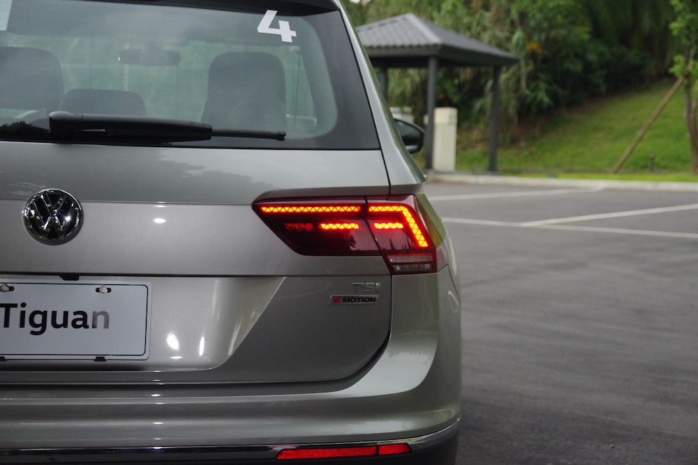 尾燈設計也很特別,但我會說很「假掰」,忘記是轉彎還是暫停,燈號就會變成下面這個,不過這樣玩燈光也是頗有趣就是了。330 TSI Highline是配備LED高亮度燻黑尾燈,有動態煞車警示功能。
