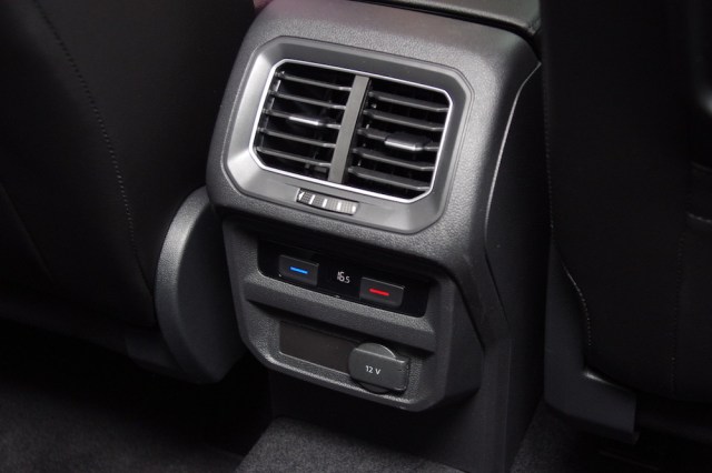 後座不只有出風口,還有獨立按鍵跟螢幕顯示溫度,只是一輛Tiguan居然有這種配備,很強,還以為是坐在豪華品牌車裡,底下還有一個12v車充,換USB插槽好像比較好?