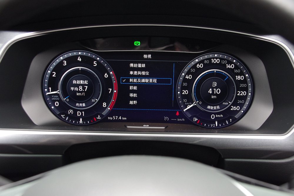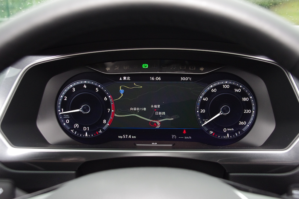 如果要選一個買Tiguan的理由,這個Active Info Display 全邏輯數位化儀表絕對是原因之一,因為它,讓Tiguan有一種在開Audi車的感覺,可以切換畫面的儀表板,還能顯示地圖,雖然沒有像Audi的那麼絢麗。