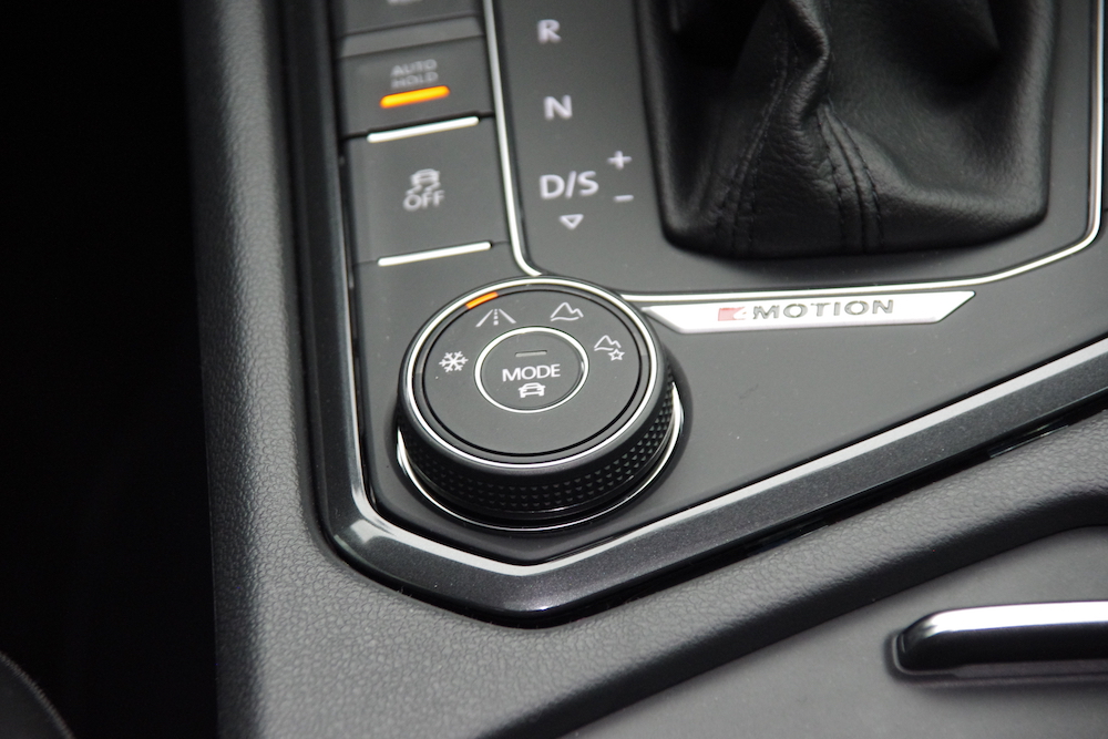 這次的Tiguan是4motion四輪驅動設計,所以也搭配了幾種讓四輪驅動可以發揮的道路模式,讓Tiguan更能適合各種狀況。雪地、道路、越野跟個人模式,雪地模式在台灣用的機會還真是少,而且真的上了陽明山,還是得加上雪鏈;道路跟越野使用的機會就會比較多了;另一個個人模式則是個人化越野模式,但還沒機會實際用到…