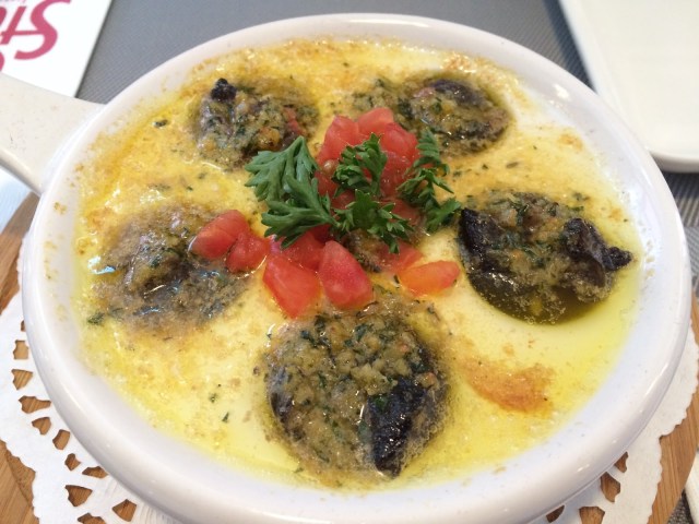 店內除了有牛排,也有義大利麵可以選擇,畢竟這也是台灣人很愛的餐點,我們這一次點了一份10盎司的大份牛排套餐,提供3種醬料,另外再加點了一份法式蝸牛,這道料理先前在巴黎有名的工人餐廳吃過,台灣也蠻多餐廳有這道料理。