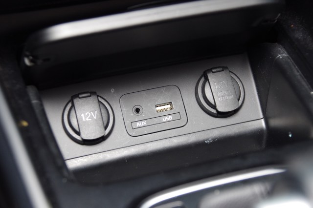Carens 有點厲害,因為它有 3 個車充!前面這邊看到 2 個,旁邊還有 USB 跟 aux in,右邊車充為 180W,拿來替筆電充電都可以,如果非必要,手機之類的還是拿行動電源充電就好,畢竟車充也用要用電瓶的電,這樣一直充,很快就沒電了。