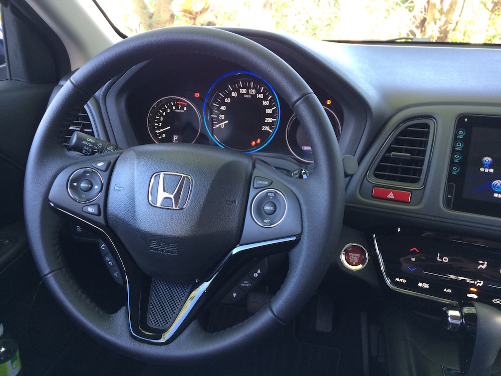 很難得Honda國產車會有配備很科技的配備,畢竟之前連Push Start跟Keyless都沒有,即使是CR-V也是,但HR-V這次不但把前面兩個配備列為標配,就連電子式煞車跟Brake Hold都變為標準配備,只是這幾項配備,在VTi只有冷暖空調,跟很單薄的方向盤的內裝裡,顯得很格格不入呀!有一種新時代與舊時代的衝突感