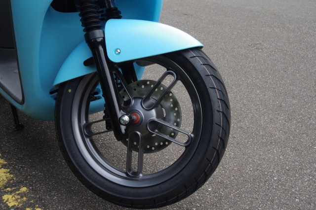 新的大輪圈設計,前 14 後 13,很偏實用性的設計,畢竟台灣的路實在不算好,先前騎 Gogoro,會覺得穩定性沒那麼好,不過這次騎了 Gogoro 2 Plus,穩定性這部分明顯好很多,雖然之後換輪胎的費用,也一定比12吋來得高就是了,這點就是有一好沒兩好。