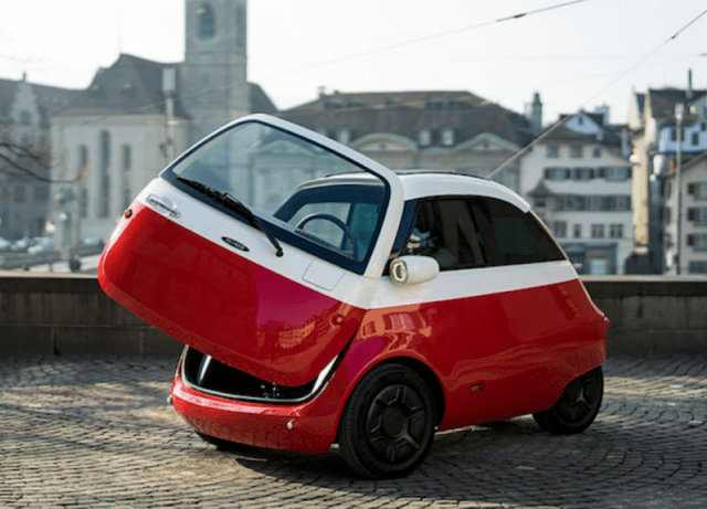 車重僅 450 公斤的 Microlino,除了可乘坐 2 人,後方也有置物空間。