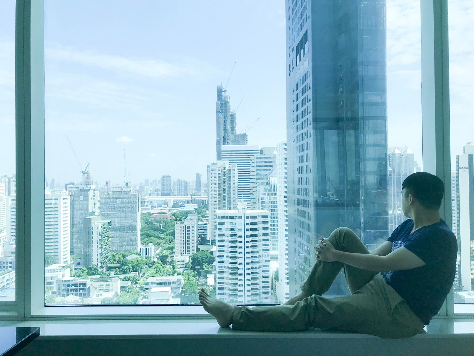 很開心的是這次剛好住到高樓層,有著電動遮陽簾的大面落地窗,放眼望去就是曼谷街景,俯視還能看得到 Grande Centre Point Hotel Terminal 21 的游泳池及網球場。沒騙人,這次 2 天 2 夜的住宿時間,睡醒就能遠眺曼谷天際線,睡前則有城市夜景伴著入眠,時時刻刻都覺得心曠神怡。
