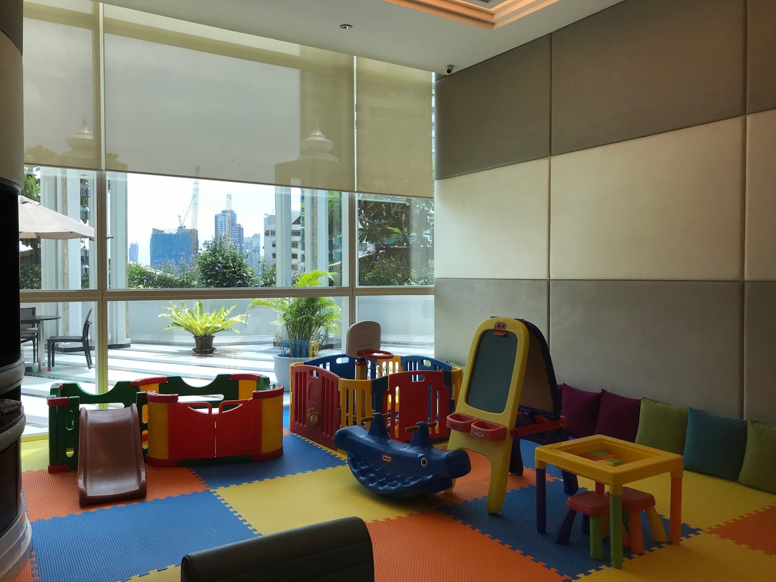 不知道有沒有人跟我一樣,平常運動不是很勤勞,但住飯店時會特別想認真用看看人家的健身房😆 Grande Centre Point Hotel Terminal 21的環形健身房空間超開闊!跑步機、滑步機、飛輪和重訓器材,基本的都有,而健身房外就是無邊際泳池,旁邊還有個適合小朋友的小淺池。如果還想消耗小朋友的精力,也有滿大間的兒童遊戲室,同一樓層還有瑜伽室。另外飯店裡還有小型的高爾夫球場、網球場和三溫暖房,使用這些空間都是免費(只有租器材要錢)光是待在飯店其實就有不少活動可做呢!