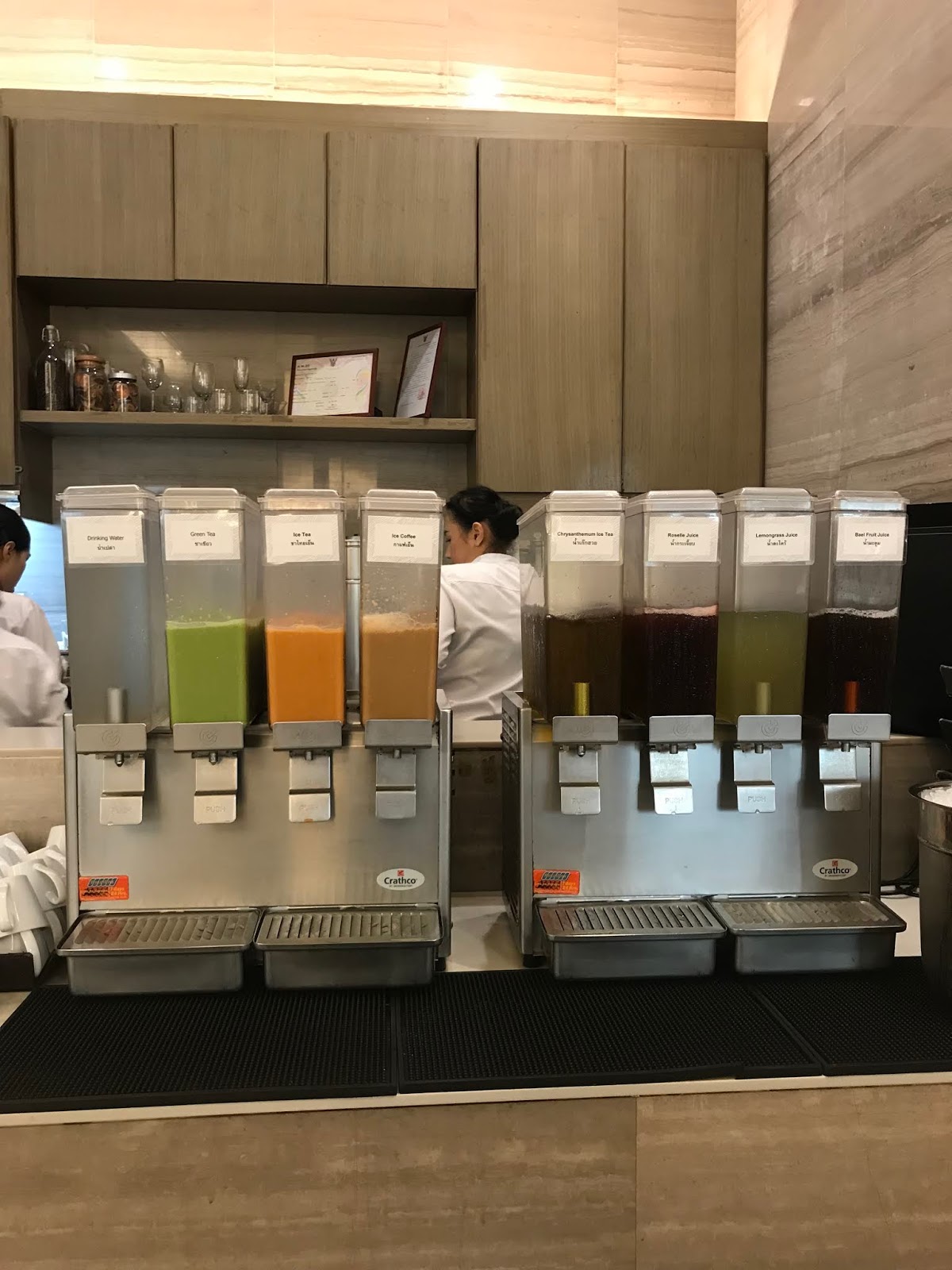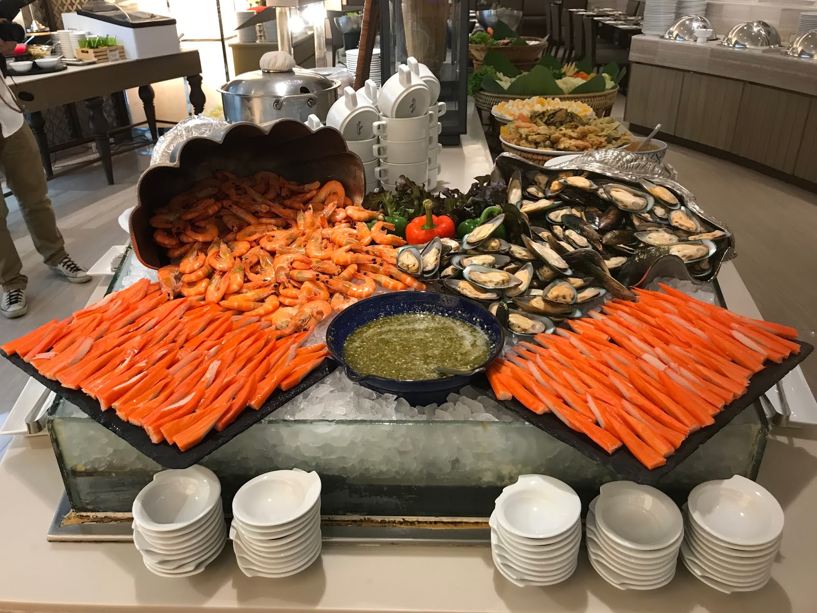 行前做功課的時候,就看到大家都推他們的早餐buffet,種類多又好吃,但我們這次特別試了他們的午餐buffet,從海鮮、燉菜、披薩、可自選料的熱湯麵到甜點,泰式西式一應俱全超豐盛,且都滿好吃的,飲料吧除了泰式奶茶之外,還有少見的香茅茶和木橘汁,沒記錯的話一人才400多泰銖。如果像我們那天一大早就去觀光,中午回來不想傷腦筋找吃的又很餓的話,這真的超經濟實惠的,吃飽晚上才有力氣跑夜市行程呀!