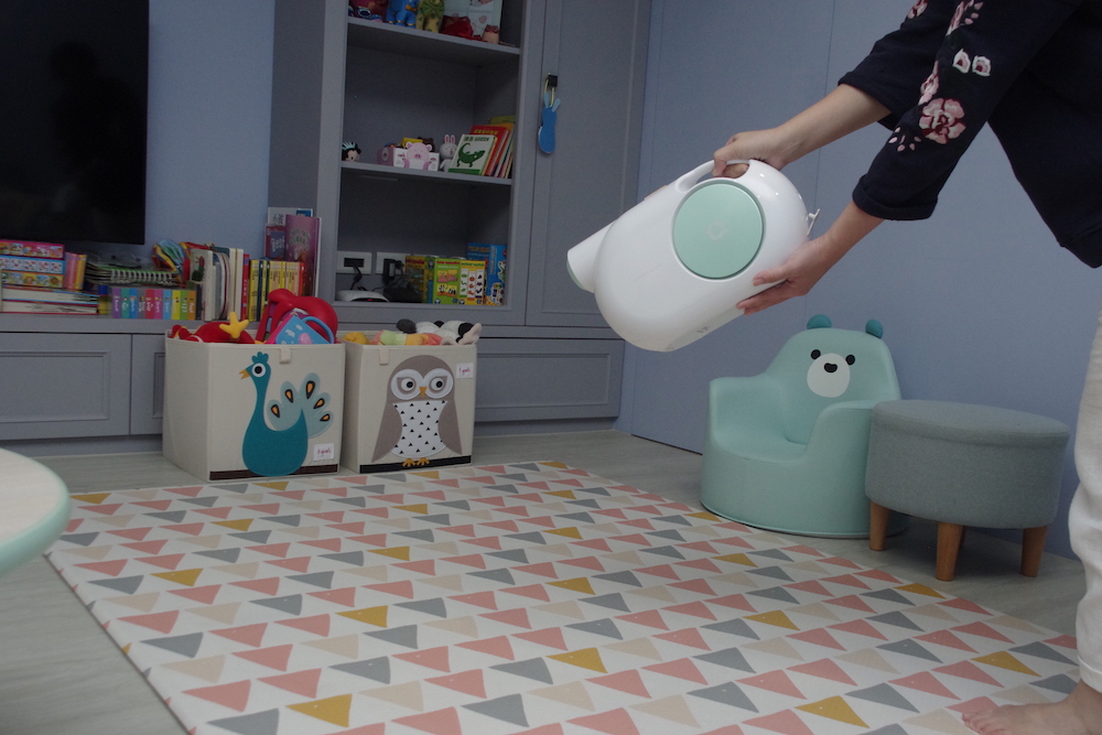 當然我們也買了最常見的抗菌霧化器,想說這樣應該可以一勞永逸了吧….但人生就是這樣,從來沒有一勞永逸這種事,只有更多其他需求,畢竟雖然可以直接放在固定位置,像是家裡客廳沙發旁,不過若要在房間使用,就還得把霧化器搬到房間裡,便利性部分似乎沒那麼理想,但要在每個房間都各買一台….ㄜ,會不會太奢侈= =