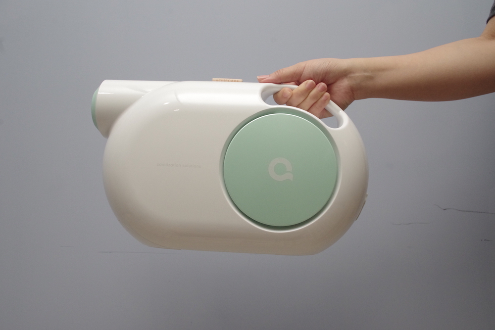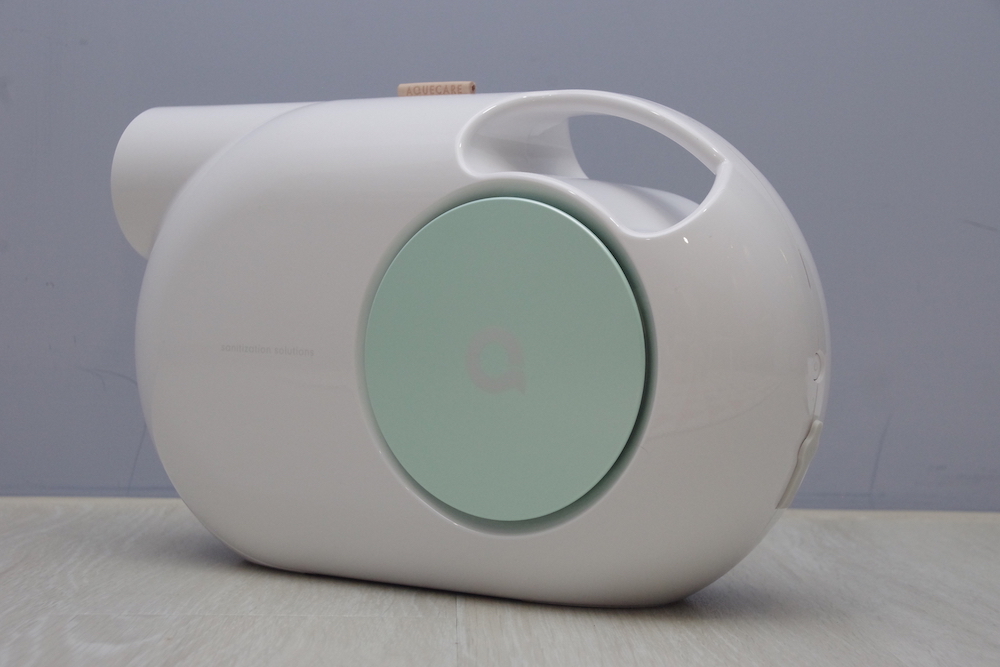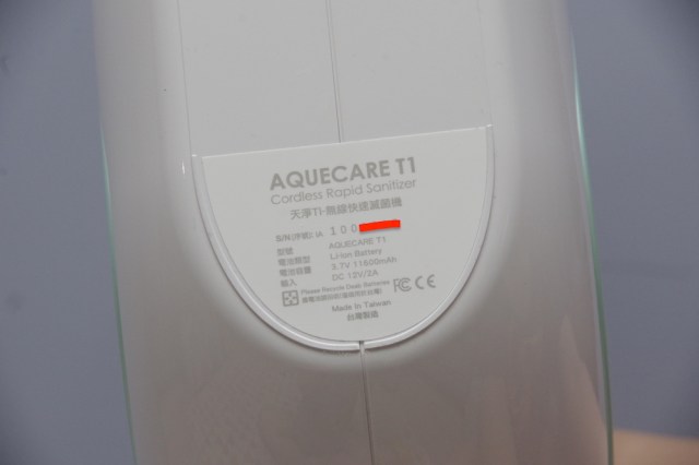 後來在網路上,發現這款Aquecare天淨T1無線快速滅菌機,長得很像我家的小綠吸塵器設計,看到訴求是強調無線設計(不是無限寶石),內建鋰電池,可以方便移動,這點還蠻切合目前我的需求,而且噴灑範圍也廣,可以達到2.5公尺,代表當手持時,可以針對特定死角或是位置進行噴灑,畢竟這點霧化器做不到…..