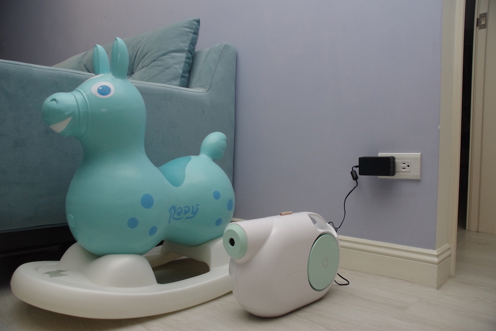 先來讓小藍充個電先,充電時間為2.5小時,放在原本置放霧化器的地方,旁邊還有女兒喜歡的Rody搖搖馬….