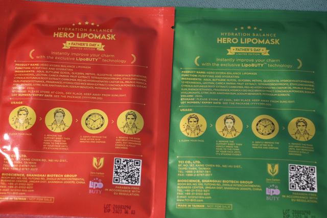 而包裝下面也寫著Fasther’s Day,代表這是針對父親(付清)節所推出的面膜版本。包裝後面就是介紹這面膜的特點,主要就是LipoButy微美科技,可使精華液 效果提升約18%,保濕效果也較一般面膜維持更久