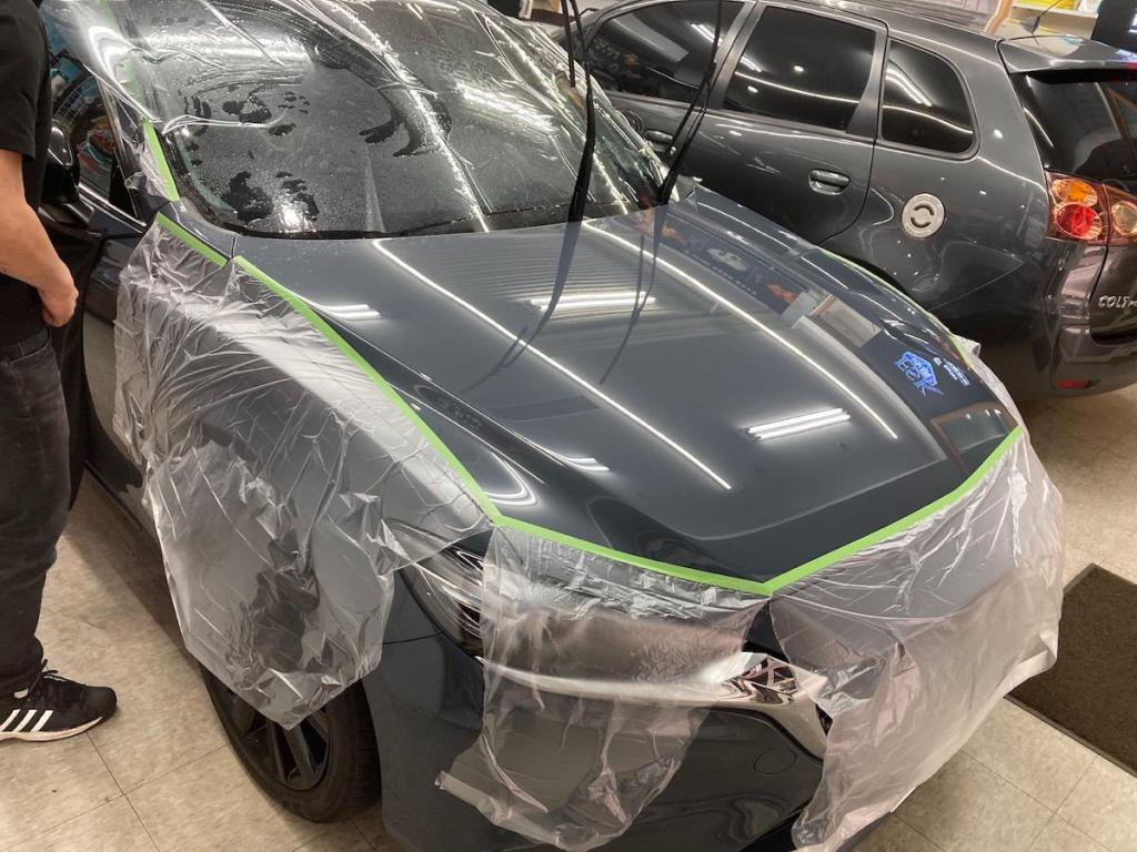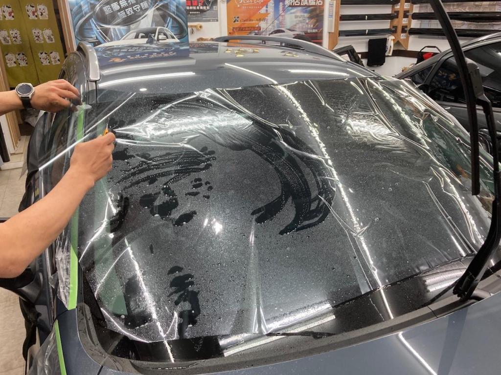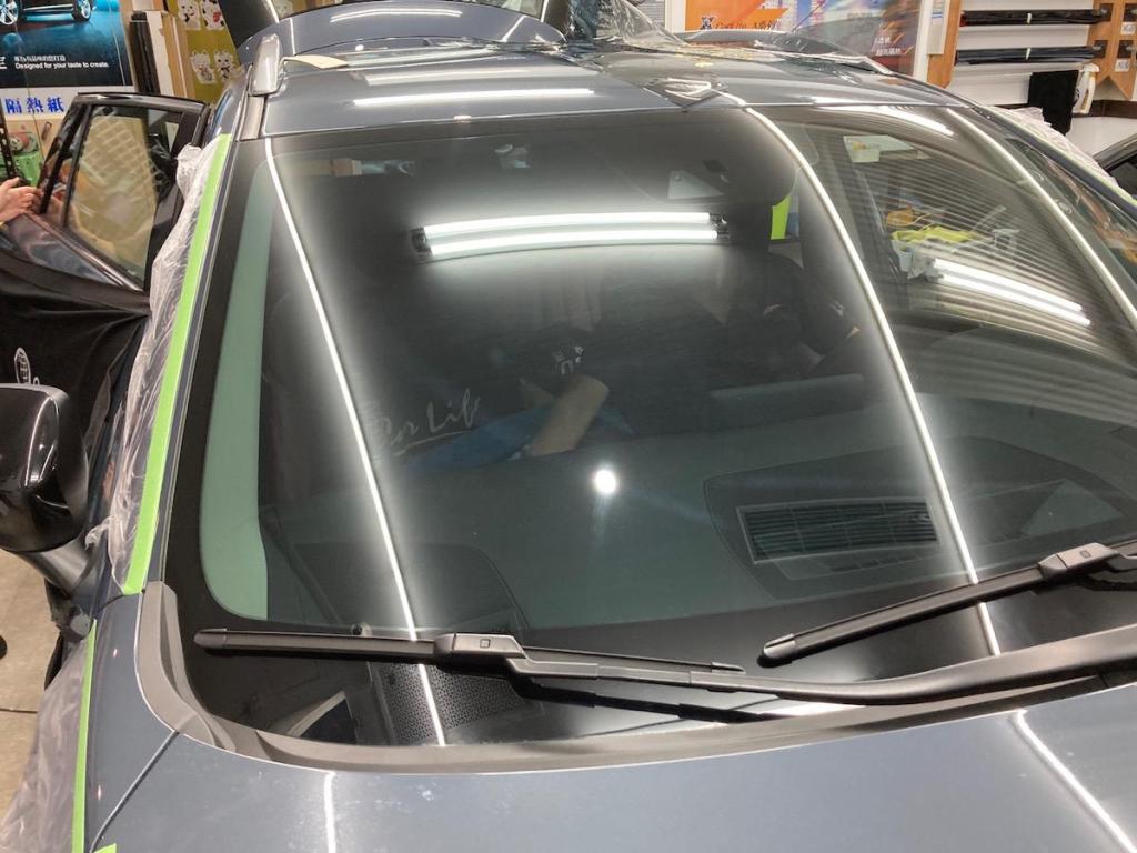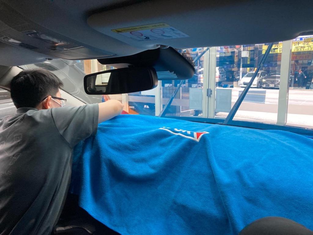 首先會先把玻璃旁的車身部分保護起來,車內部分也同樣如此,座椅等都要包覆起來,才不會因此弄髒
