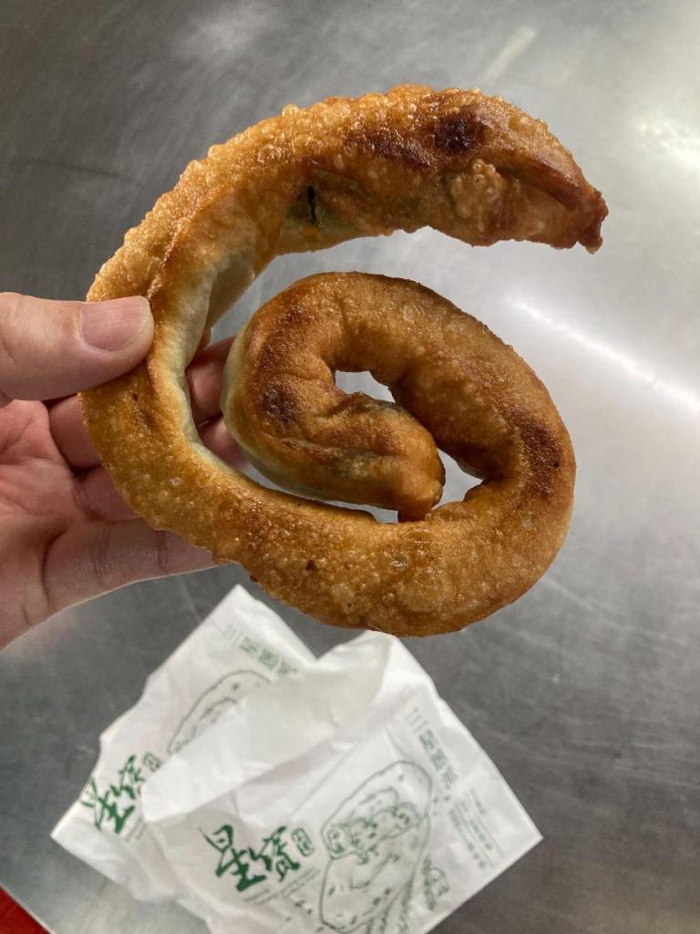 另一個就是自己做蔥餅,會有老師在一旁教學,做好之後可以讓店家幫你加熱,完成你自己做的蔥餅囉