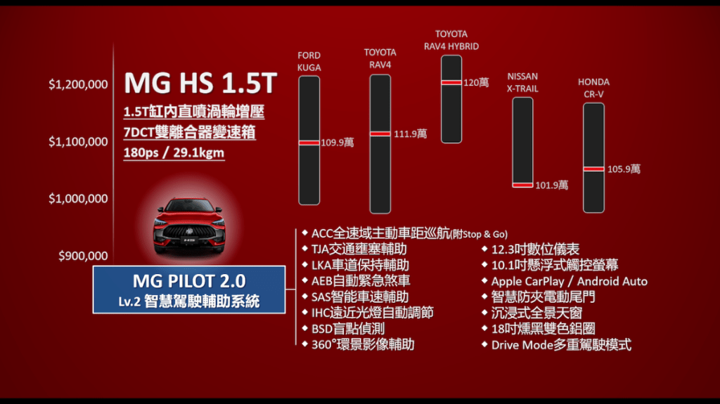 這是重返台灣的MG HS休旅,跟CR-V還有Kuga同級