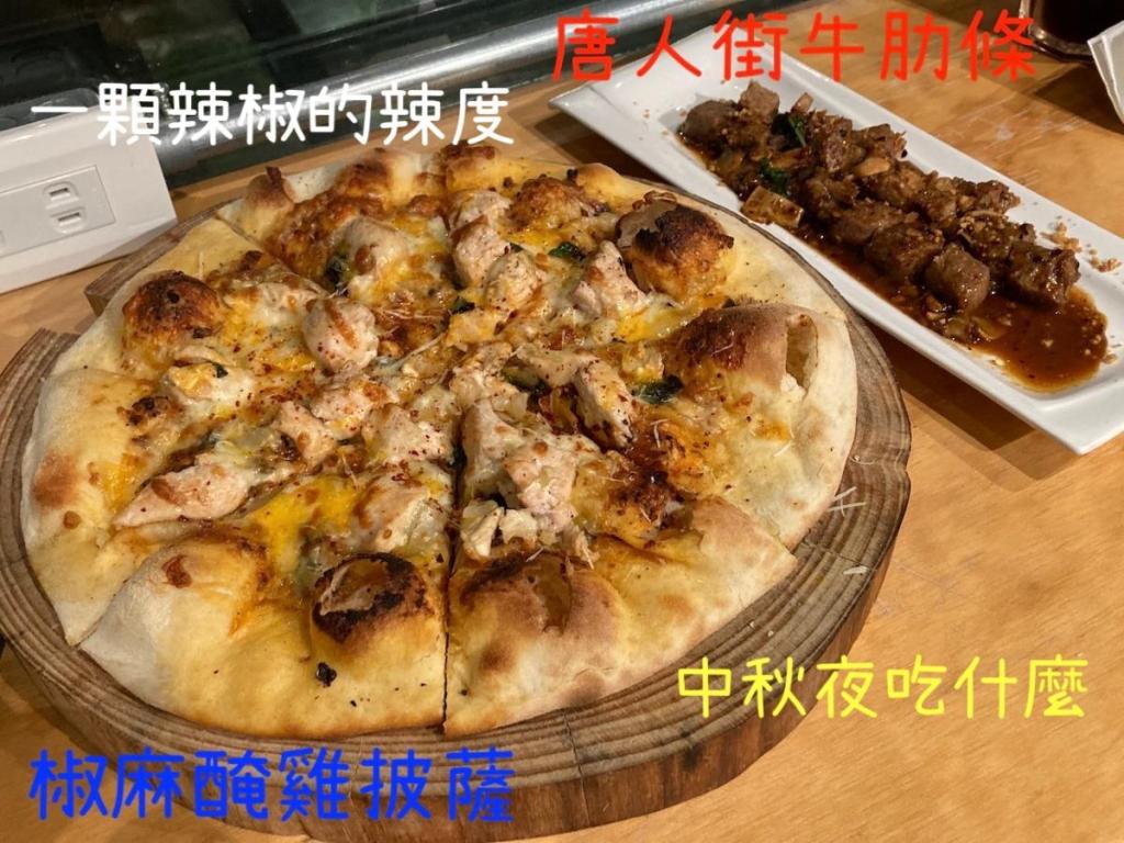 這次我們決定來點不同的,所以我們選了開胃菜的唐人街牛肋條,另外來一份椒麻醃雞披薩,搭配一份海鮮炸物拼盤,當作中秋節晚餐