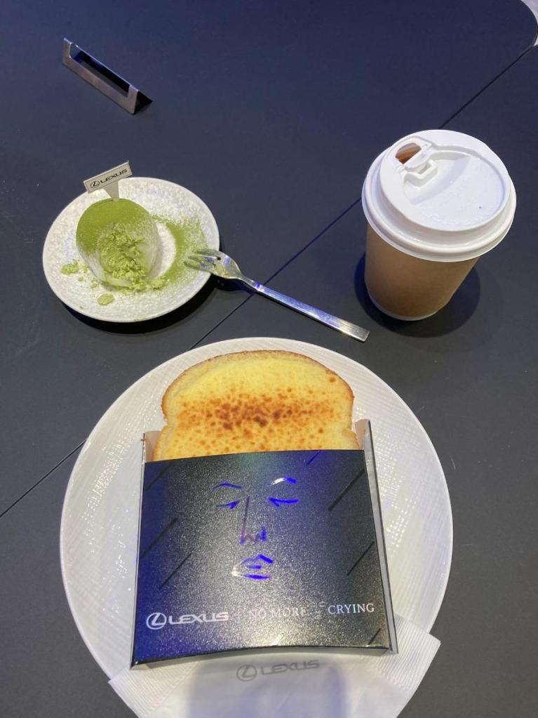 入內參觀不用錢,但裡頭也還是有提供甜食飲品,而且是聯名合作,與正面奶酥、辻利茶鋪合作,像是正面奶酥就有伯爵、抹茶、可可跟原味,我們選了一個基本款的原味