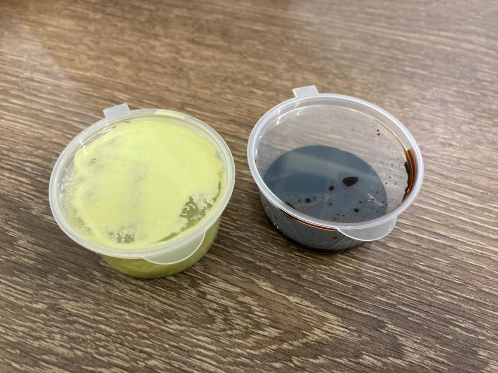 份量不算大,也沒有甜湯之類,有三樣小菜,海南雞的肉質不錯好吃,薑黃飯也出色,另外還有三種醬料可選(辣椒的我沒選),但就像剛剛說的,份量算是剛好但稱不上多