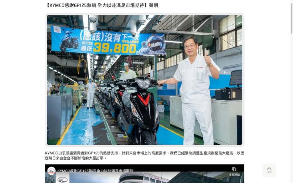 機車畢竟是台灣多數人最常使用的交通工具,不管是上班通勤還是附近代步。光陽有一台GP125,我不知道大家是否騎過,我家從這台車2006年至今,已經買過兩台,一台是我爸騎,另一台是我弟騎,屬於便宜好奇的入門125機車,曾經一年賣出快10萬台的成績,堪稱不老機車