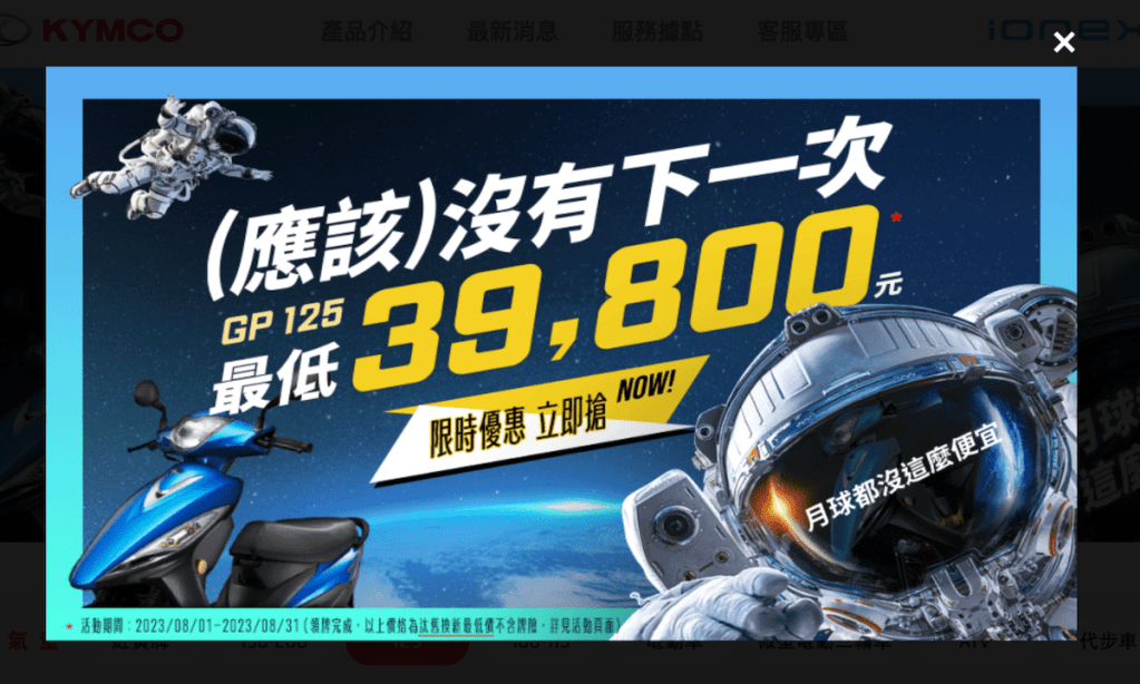 光陽在8月,開始狂打現金購車最低新台幣39,800元的價格,就可以有一台鼓煞版GP125,雖然我不是數學家,但這聽起來的確很厲害,而且這促銷就只有8月
