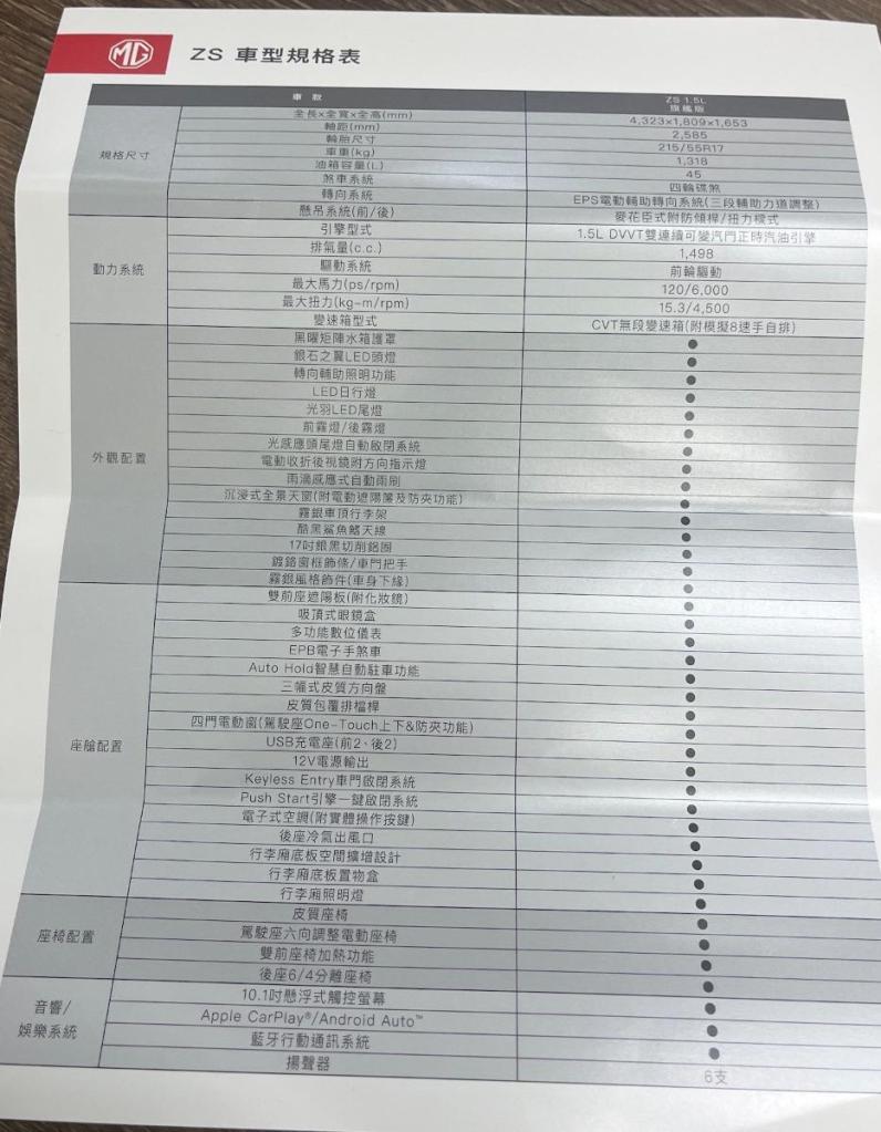 去年跟今年賣得不錯的MG品牌,準備要再推出一款ZS小休旅,對手會是Toyota Yaris Cross、Honda HR-V與Nissan Kicks,終於它的配備出來了,配備不但比上述更滿,甚至還有全景天窗這樣的少見配備