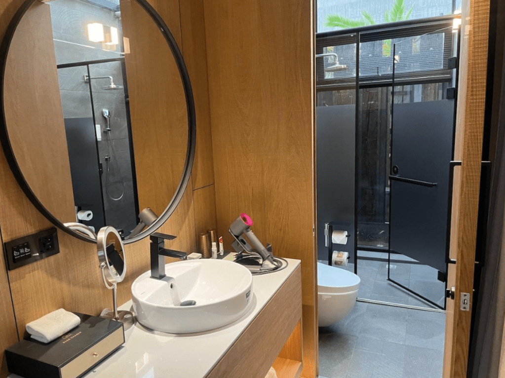 房間裡的配色、材質搭配,都可以看得出是專業人士規劃,在很多細節上也都相當用心,有Dyson吹風機、EVIAN礦泉水、ILLY咖啡,冰箱裡更提供啤酒(未成年請勿飲酒)免費暢飲,雖然我不喝酒