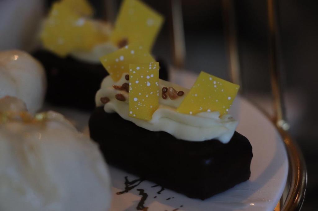 其他架上的還有燻鮭魚鵜鶘蛋、有著A5和牛切片與法國黑松露薄片的和牛沙拉、迷你龍蝦布里歐、柚子榛果可頌
