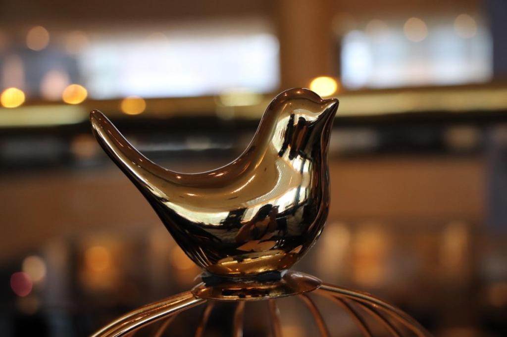 這午茶籃子上面,還有一隻金鳥,精雕細琢的金鳥(?