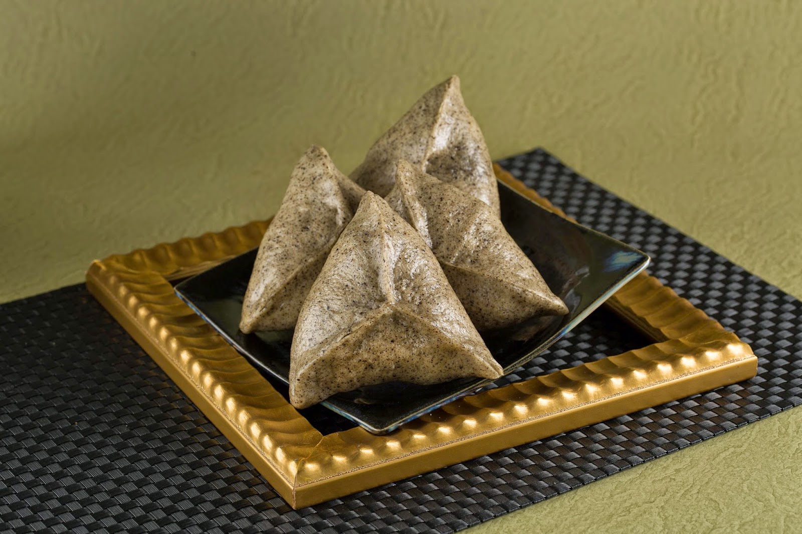 麻糬芝麻銀三角,這個好吃,咬下去後裡面的芝麻會流出來,很像是在吃芝麻湯圓的Fu,其實是芝麻粽子吧!
