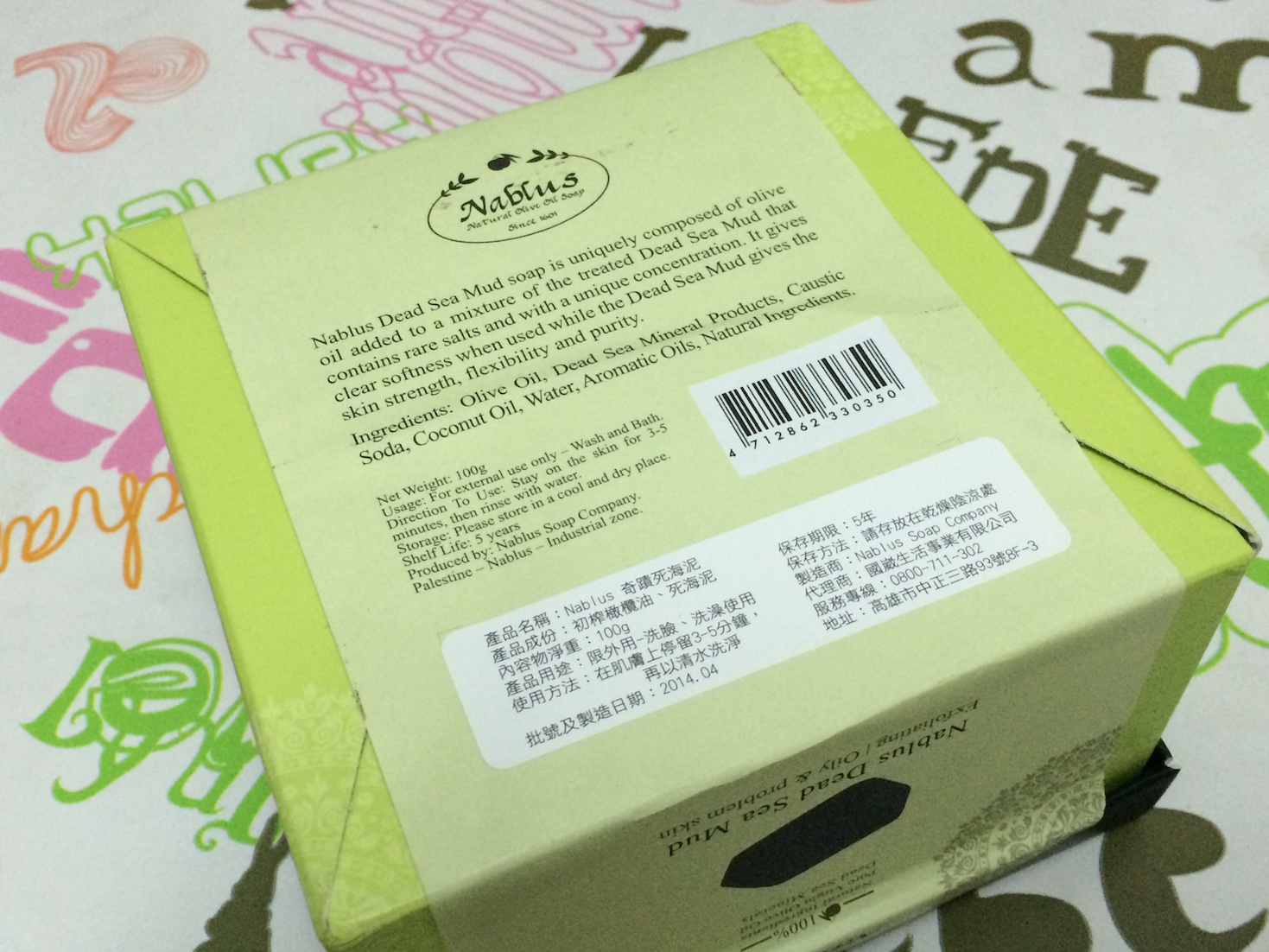 是「納布魯斯」(Nablus),不是「那不勒斯」(Napoli)這次拿到的奇蹟死海泥皂,擁有的是超過深海50倍的礦物質,而是且對人體有益的礦物質,代謝清潔效果相當不錯,再結合了初榨橄欖油,清潔完畢後,會讓人感到相當舒服,有煥然一新的感覺。