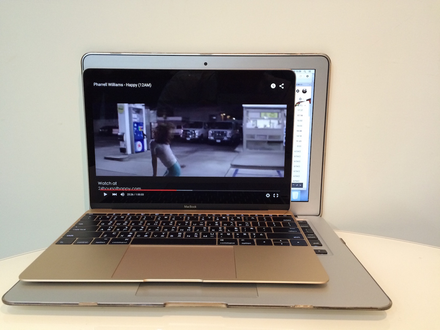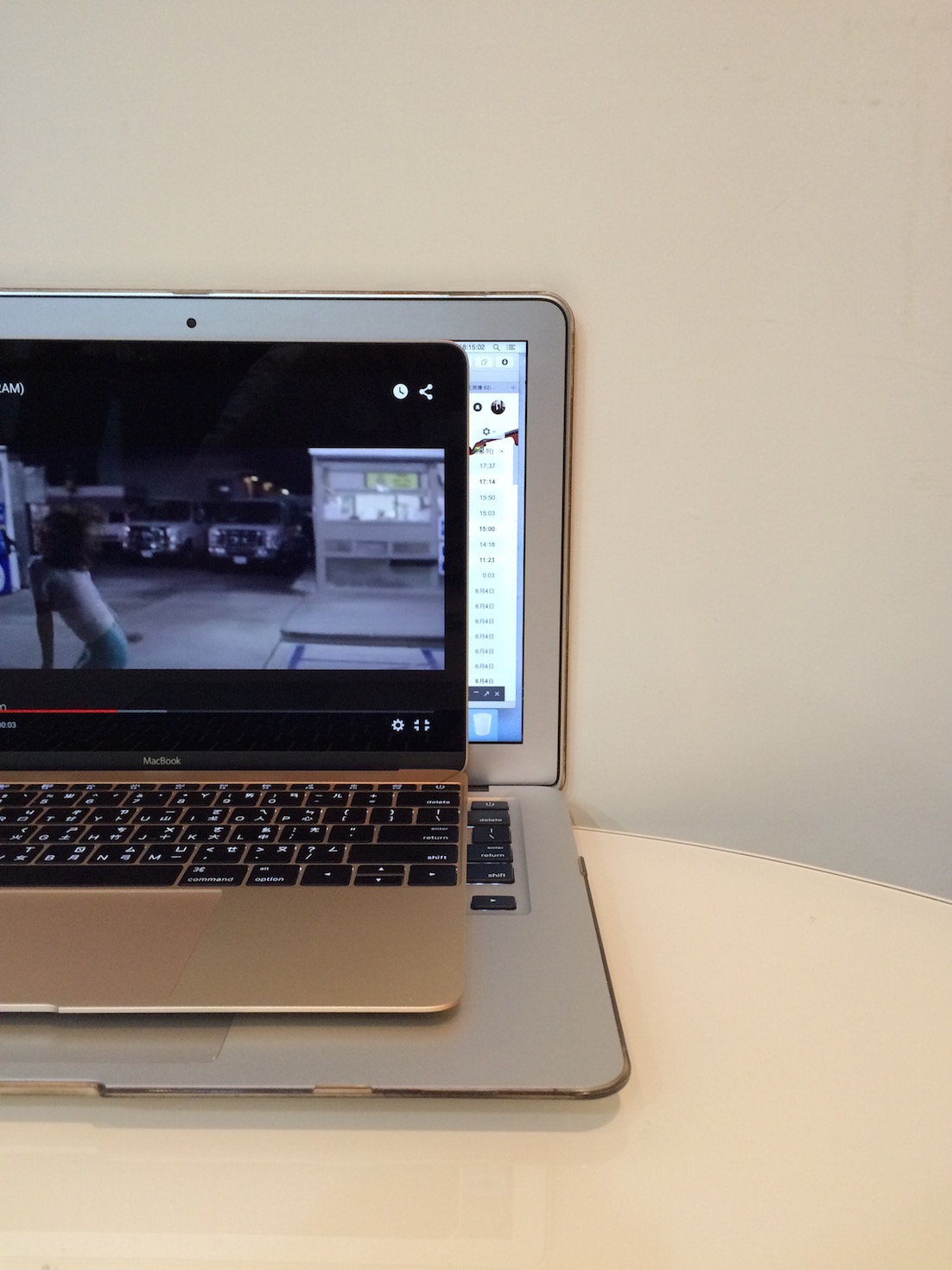 接下來跟Macbook Air做點外觀比較明明只小了一吋的螢幕,但卻看起來很像是只有10吋的大小,Macbook是貨真價實的12吋筆電,頓時覺得Macbook Air好大一台,Apple技術強大,由此可知。讓左邊對齊後,看看右邊的差距,就知道差別,不過我自己較喜歡鍵盤旁邊的空隙,這樣讓手比較好擺放,有好有壞,Macbook緊緻的程度,大概就像是敷過SK2的臉吧(笑)闔上之後來比一下,恩,迷你的Macbook效能部分倒是沒有時間好好試試,不過網路上都有相關評價,只能說這樣的筆電,效能其實已經不差了,只是大家對於他的期望很高,但這樣的效能也很夠用了。結論:我也好想有一台金色的Macbook呀呀呀!!! -