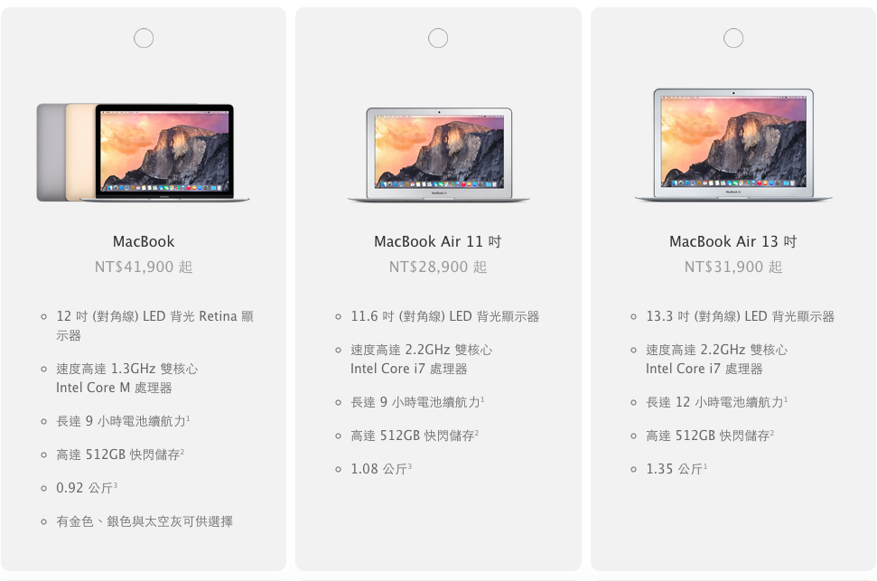 這台12吋的Macbook,不冠上Air之名,但卻比MBA還要更輕薄,11吋的MBA,剩下的優勢,就是價錢夠低(不到3萬就可入手),跟內建2個USB,以往我不太推薦買11吋,因為螢幕太小,但12吋一推出,反而覺得11吋的MBA很適合預算有限,又想買輕薄加好帶的人使用。