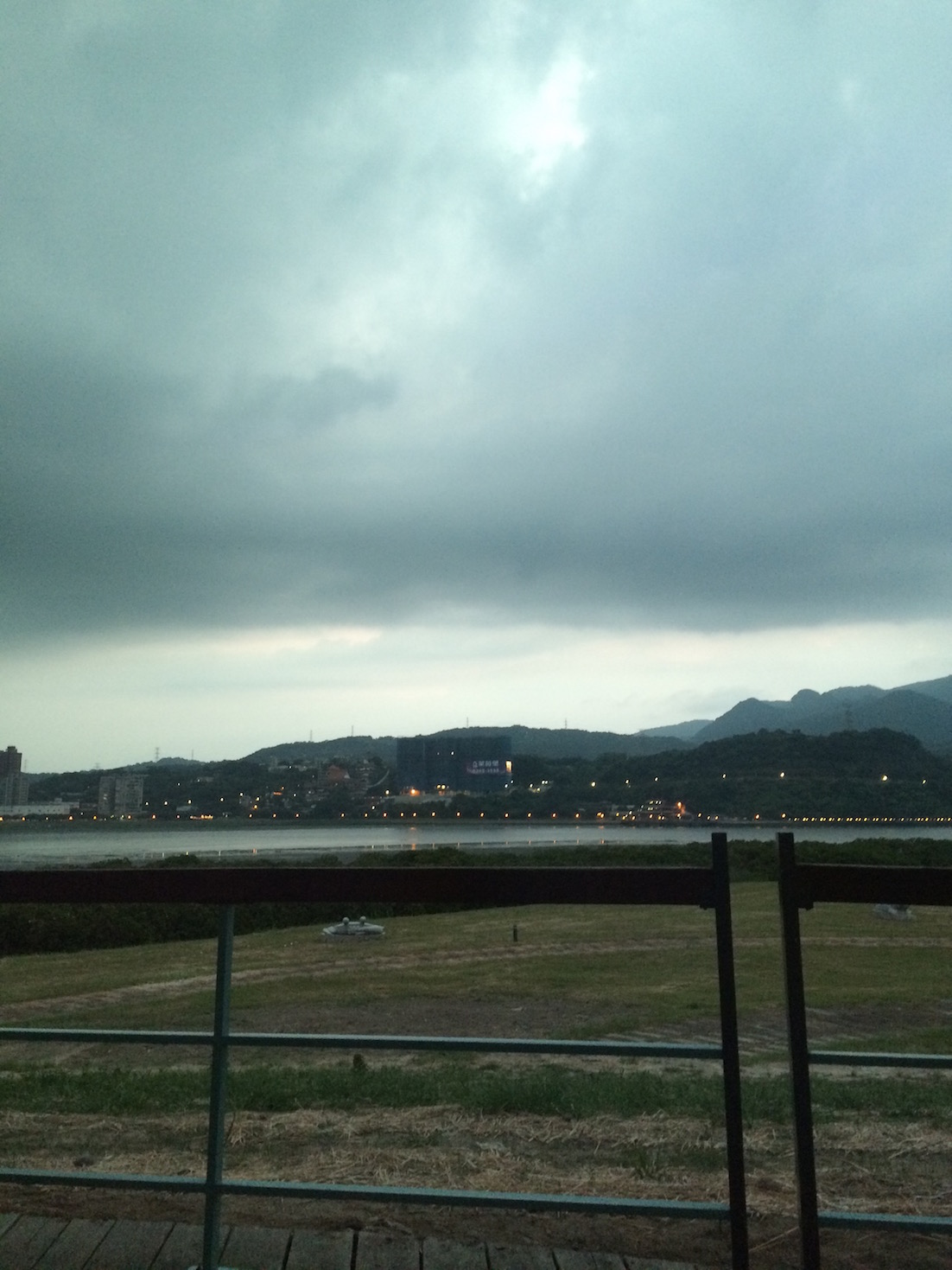 端午連假的第一天,白天太熱不想騎車,到了四點多決定出門,從民生東路底的水門進去河濱公園,沿著車道一路往大稻埕、馬場町等地騎。其實五點多,天空都還算蠻亮的,不過為了實際感受,一到河濱後,我就把它戴上了,實在很不想以真面目示人,但當下沒其他人,只好自己硬著頭皮拍一張了戴上後的服貼效果很好,因為兩側都有橡膠加上鼻樑也有橡膠,非常穩固,包覆著整個眼睛,想要用餘光看一下沒帶的效果都沒辦法….除非把眼鏡拿下來五點多帶的時候,感覺很像是四點多的亮度,所以當下天空漸漸沒那麼亮了,但戴著時候的視線,還是非常的明亮約莫6點40左右,我騎到了社子島頭公園,距離我從民生東路開始騎的天空,已經明顯變暗許多,這一張,是我把眼鏡放在iPhone 5s相機鏡頭前拍攝的畫面,這一張,則是沒有眼鏡的狀態下拍的照片。兩張都沒修圖,也沒有做任何的HDR等設定,直接拿直接拍,只有尺寸的調整最後騎到福和橋,從公館騎回家,大約花了四小時吧,太久沒騎車了畢竟沒有儀器可以實際測量,自己的感覺如下,戴了之後,亮度有提升,不過越晚越暗的地方,效果就還好,最好的狀態,就是有微光,如路燈等,效果會比較好點,不然效果並不會好到哪裡去。不過戴了它,最大的好處,就是晚上對眼睛而言有保護效果,也比較不用擔心飛蚊問題,穩固的狀態下,也不會晃動,至於夜視,對我而言反而是次要功能了(笑)