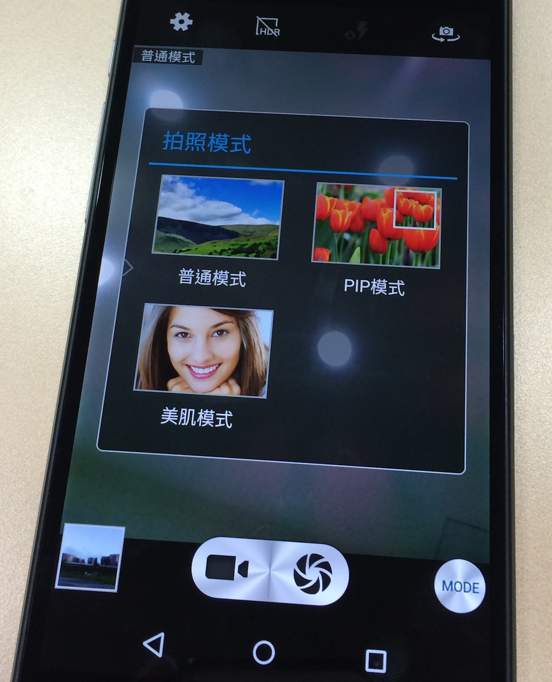主相機的模式很多,全景模式/美肌模式/運動軌跡模式/情景相片模式/PIP模式/多角度模式