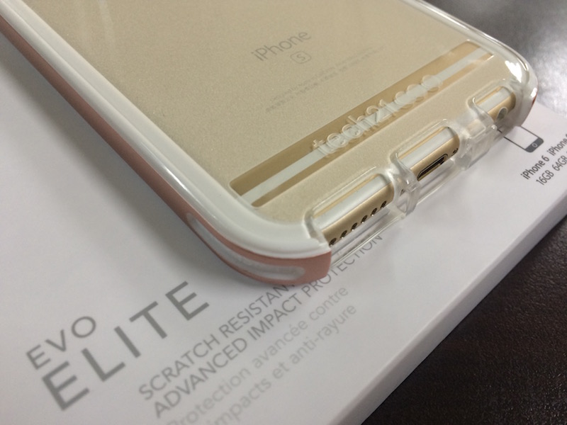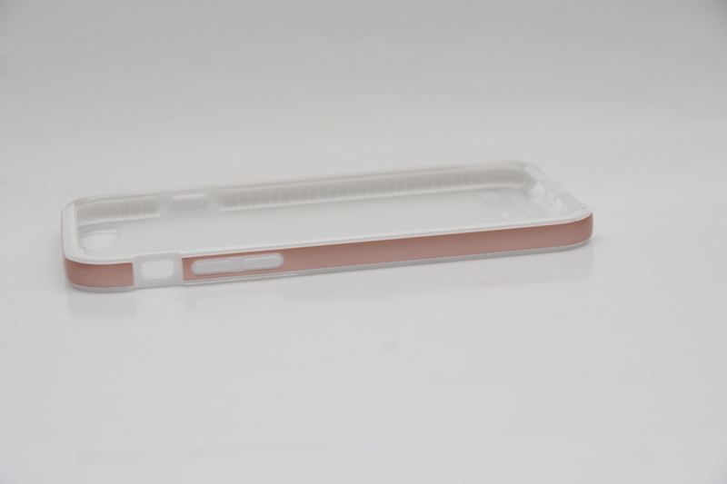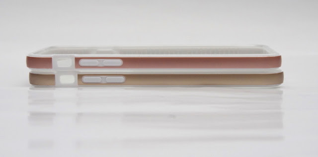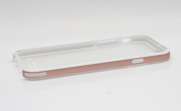 玫瑰金的部分,看照片可以看得出就是兩邊,底部跟頂部都是透明的。側邊部分都有著Tech21的Flexshock材質