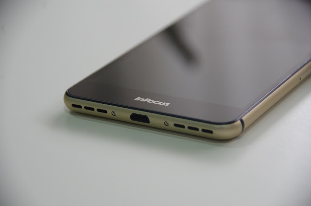終於看到的正面照,5.2吋Full HD螢幕, IPS廣視角全貼合。不過如果正面的邊框,也跟背面一樣採同色設計的話那就更好了,其實也不只InFocus,其他家也都一樣。