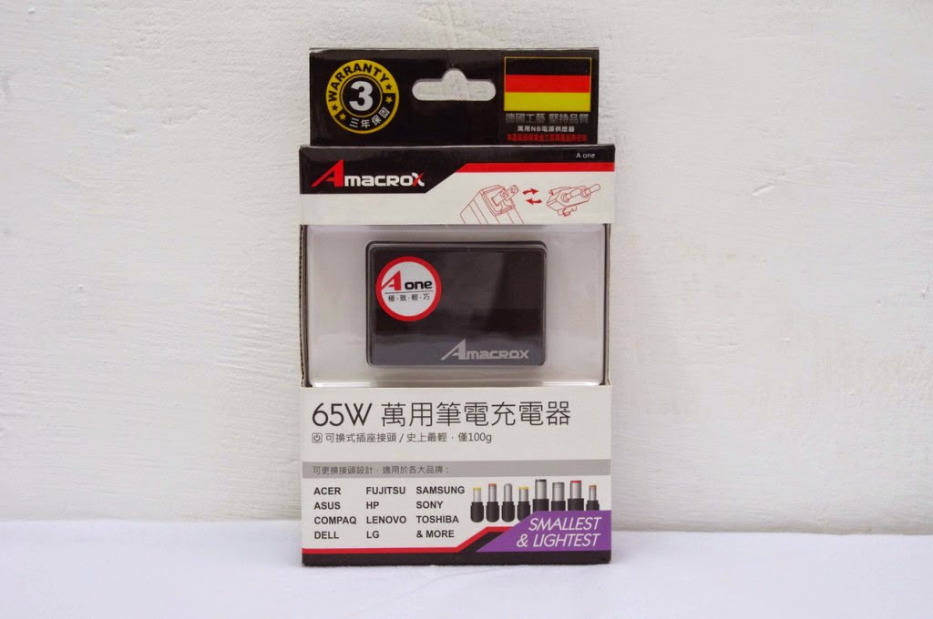 蘋果的設計就是美,連筆電充電器都設計得很有質感,重量300克,肥大的WINDOWS筆電充電器完全沒得比。不過終於有一款筆電充電器,不再那麼肥大。來自德國的Amacrox,這款U One充電器,就是很不錯的選擇。類似蘋果充電器的設計,將變壓器部分跟插頭整合,體積也比一般筆電小很多,拿我的iPhone 5s相比,立即就看得出差別,重量大約100克,只有傳統筆電充電器的1/3,少200克看起來好像沒什麼,但你知道什麼叫做壓死駱駝的最後一根稻草吧!盒裝長這樣子,除了體積小重量輕,它的另外兩個賣點,第一個就是提供了超多接頭,知名的品牌幾乎都有支援,從宏碁華碩,就連台灣很少看到的三星,甚至連LG的筆電都有支援,不過台灣買不到。這款其實跟另外一款A One大同小異,主要是差別在這組U ONE支援Lenovo的Ultrabook,就是上面這個接頭,有了它,你的Lenovo Ultrabook也能使用U ONE。編號 相容性筆電品牌 1 HP 2 Toshiba, Lenovo(IdeaPad) 3 SONY 4 Acer, Asus 5 Asus 6 Acer, Asus, Samsung 7 Dell, HP 8 Lenovo 這個表格中,多半熟悉的品牌都有納入,不過我想到一個台灣其實很少人用的,那就是Panasonic Let’s Note系列,就沒有在這裡頭,用Panasonic筆電的人,買之前要先確認一下這部分。不過只要下一台不是Panasonic筆電,仍有機會使用到U ONE。